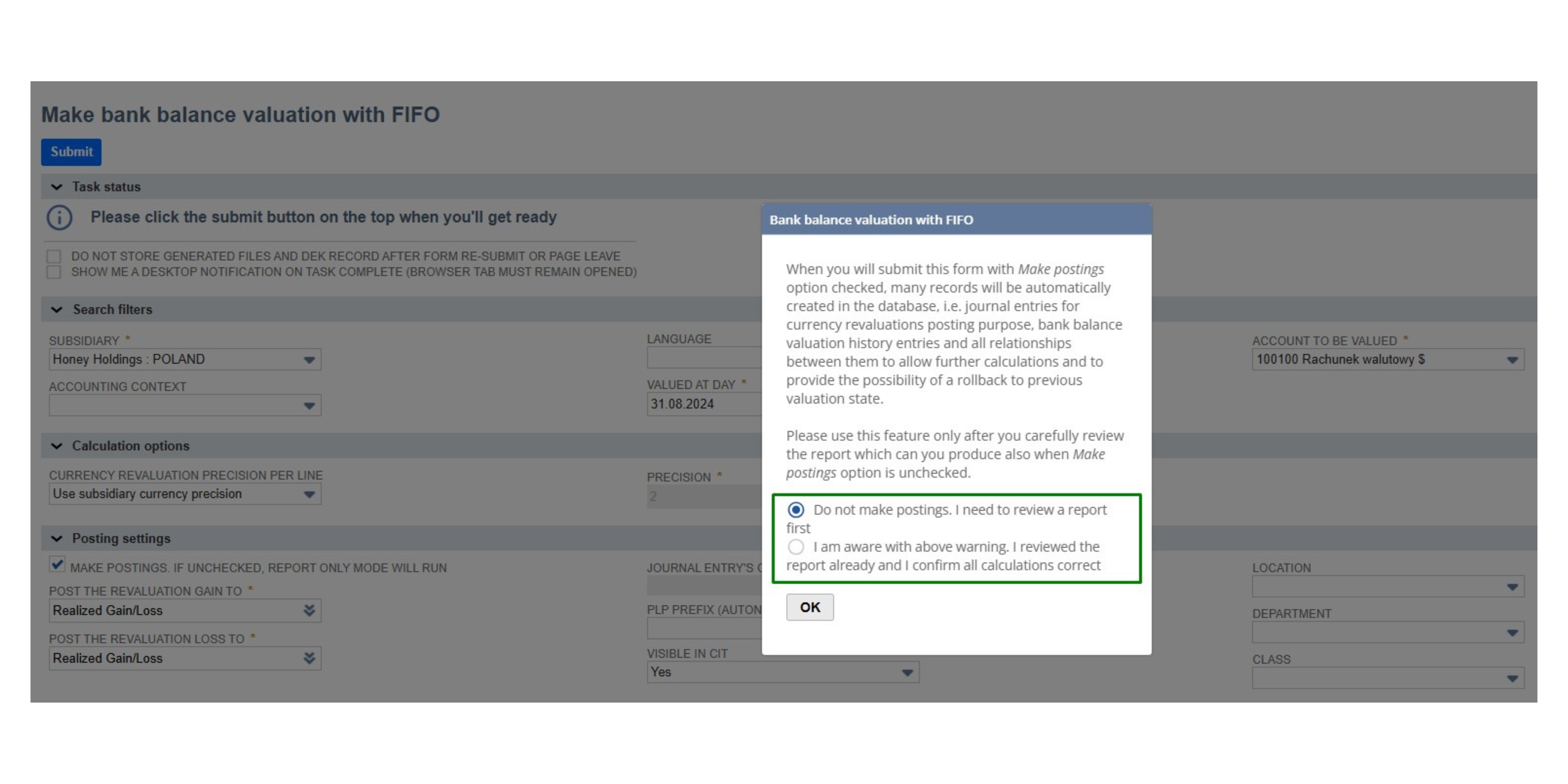 We have made corrections in some areas of the system to adapt the PLP package to the new Redwood interface. The buttons for selecting options in additional windows used in the Polish Localization Package modules have been changed: