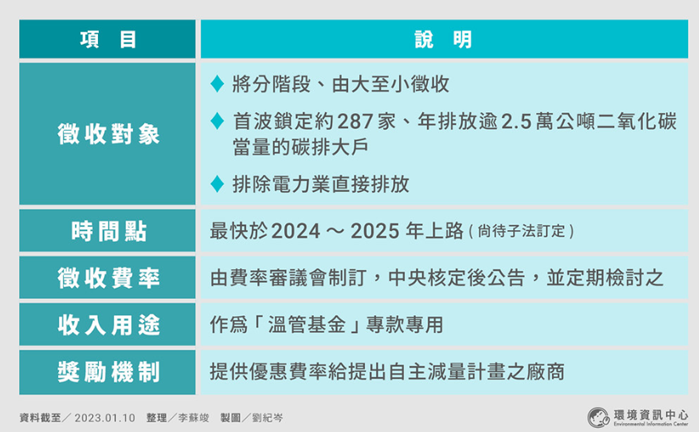 已成立專責小組進行碳邊境稅的研究,預計2025年前將陸續推出相關應對措施或試點計畫。