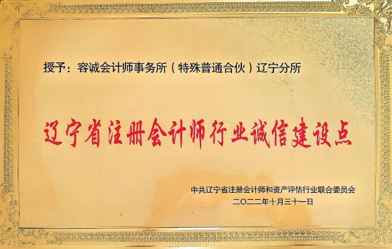 容诚辽宁分所被辽宁省注册会计师协会评选为“辽宁省注册会计师和资产评估行业诚信建设点”