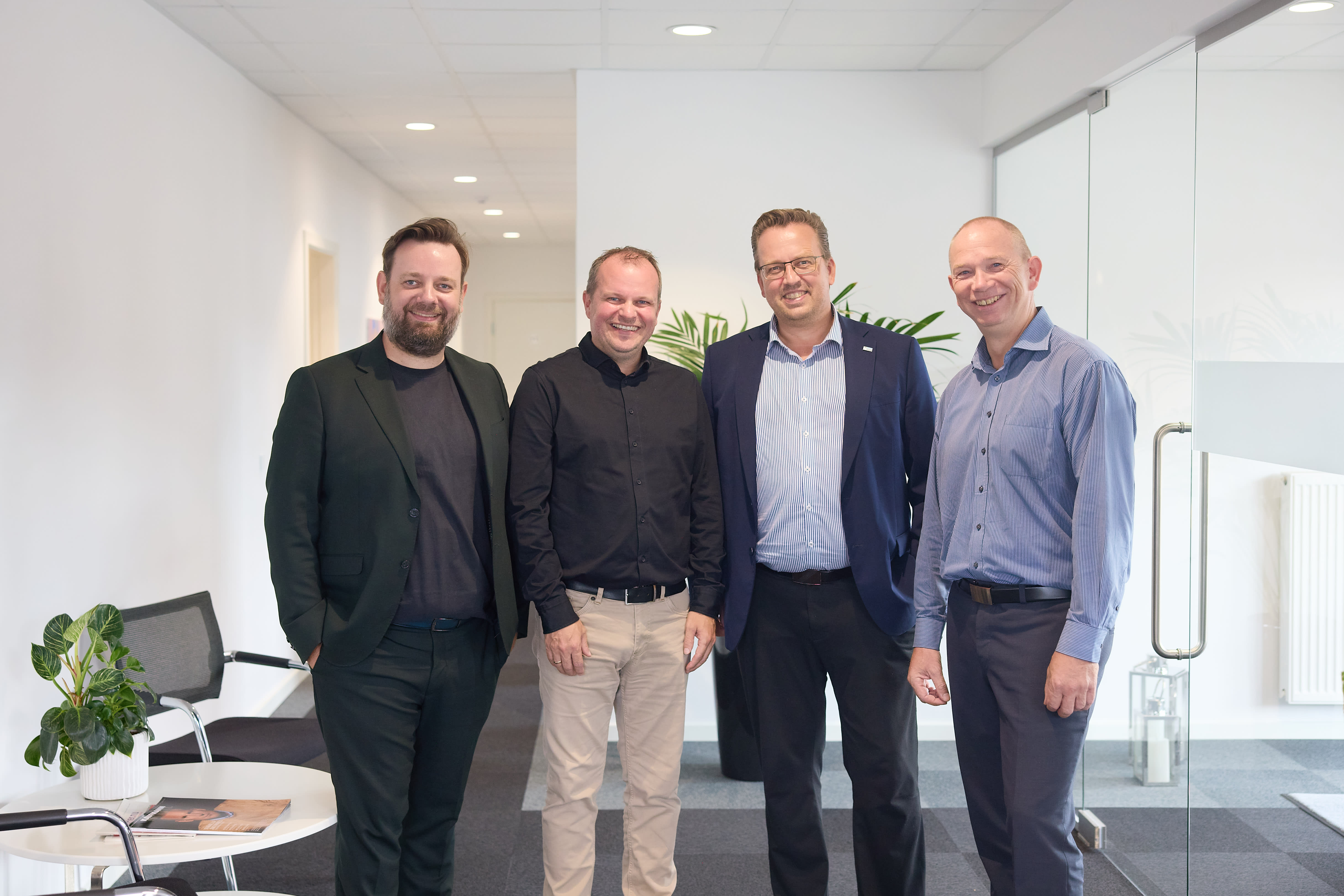 Fra venstre; Søren Yde, partner og bestyrelsesformand i RSM, Lars F. Lundtoft, partner i RSM Pandrup og Aalborg, Lennart Mouritzen, partner og direktør i RSM og Christian Jensen, partner i RSM Pandrup og Aalborg. På kontoret i Pandrup.
