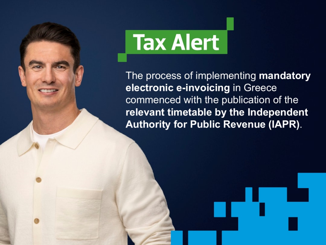 Newsroom September 17, 2025 Tax Alert: Mandatory E-Invoicing in Greece – Implementation Timeline Announced READ MORE September 17, 2025 Tax Alert: Υποχρεωτική Ηλεκτρονική Τιμολόγηση στην Ελλάδα – Δημοσίευση Χρονοδιαγράμματος Εφαρμογής Read more September 11, 2025 RSM Insights | Νέα δεδομένα στη φορολογία ακινήτων μετά τη ΔΕΘ – Τι δείχνουν οι Ευρωπαϊκοί Οδηγοί Φορολογίας Ακινήτων της RSM Read more September 10, 2025 Holding Greek Real Estate READ MORE September 10, 2025 Selling and transferring Greek Real Estate READ MORE September 10, 2025 Quick overview of Greek Real Estate READ MORE Global September 10, 2025 Acquiring Greek Real Estate READ MORE Global June 26, 2025 Labour Alert: Επεκτείνεται η υποχρεωτική εφαρμογή της Ψηφιακής Κάρτας Εργασίας σε Χονδρεμπόριο, Ενέργεια και Χρηματοπιστωτικές Υπηρεσίες READ MORE Global May 26, 2025 Έλενα Στυλιανού: Από το ΔΣ του σήμερα στο ΔΣ του Αύριο: Γιατί τα Διοικητικά Συμβούλια Οφείλουν να Μετασχηματιστούν Τώρα READ MORE