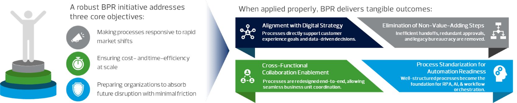 Business Process Redesign is not about tweaking existing workflows. It requires organizations to challenge assumptions, break silos, and design operations with digital customers, workforce, and data flows in mind.