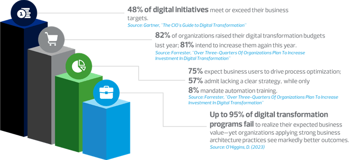 These numbers reinforce a critical lesson: digital transformation fails not because of weak technology, but because organizations attempt to automate processes never designed for the digital era.