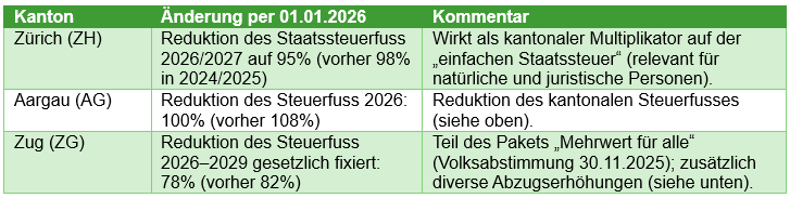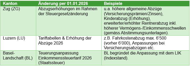 Nachfolgend sind einige wichtige kantonale Änderungen per 01.01.2026 aufgeführt.