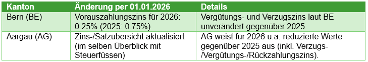 - Verzugs-/Rückerstattungszins: 4.0% (2025: 4.5%)