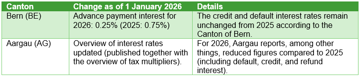- Credit interest (voluntary advance tax payments): 0.0% (2025: 0.75%)