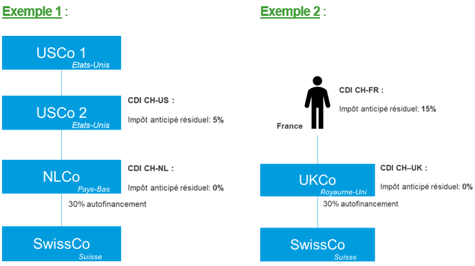 - « Treaty shopping » : interposer une société dans un pays dont la CDI offre un meilleur taux que celui applicable à l’actionnaire indirect (Exemple 1).