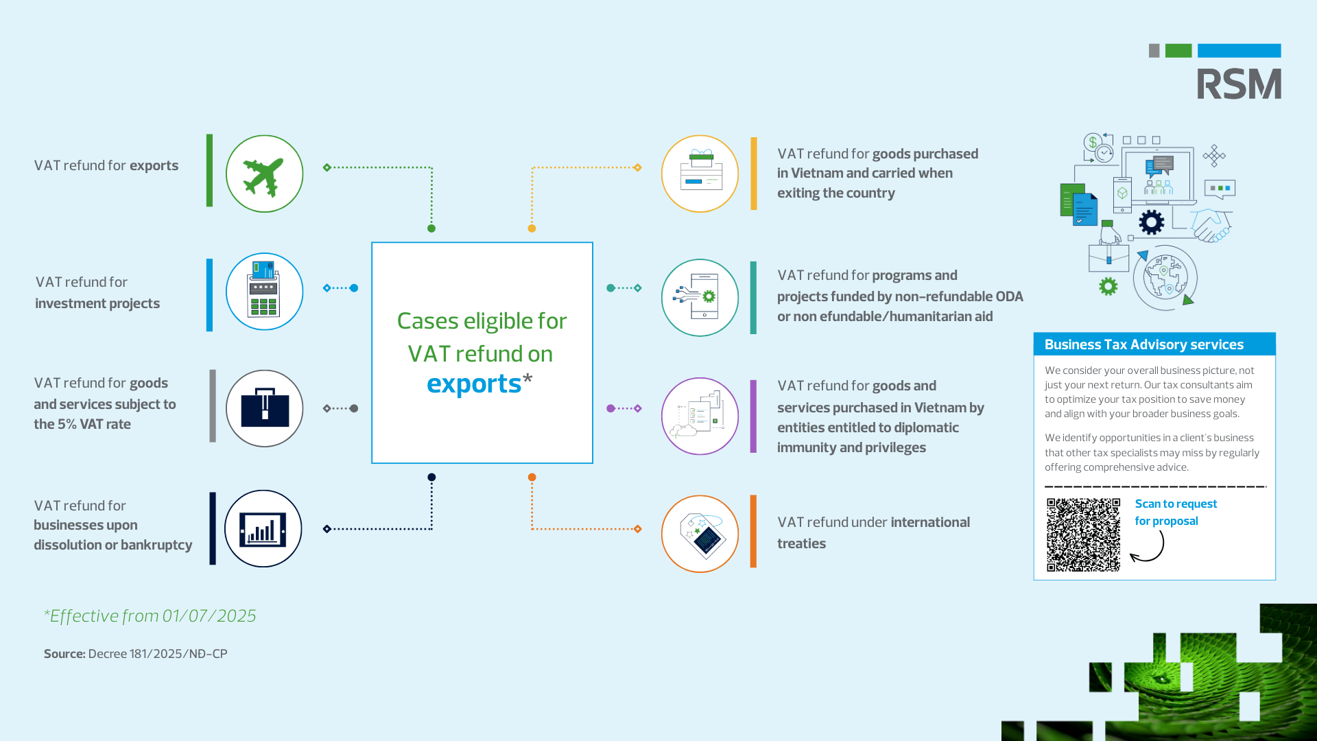 Starting 1 July 2025, the regulations on VAT refunds were updated with clearer rules on which cases qualify. The following are important notes for businesses regarding cases eligible for VAT refunds on export activities.