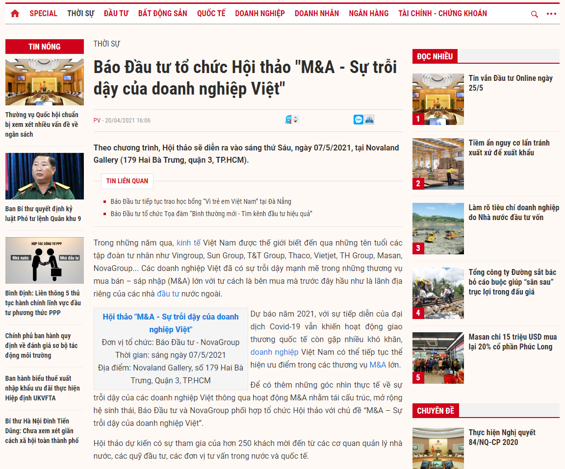 Theo chương trình, Hội thảo sẽ diễn ra vào sáng thứ Sáu, ngày 07/5/2021, tại Novaland Gallery (179 Hai Bà Trưng, quận 3, TP.HCM).